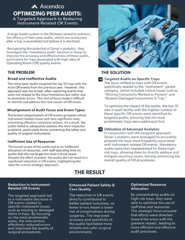 This case study highlights a large health system in the Midwest’s commitment to patient safety through a novel approach to peer audits. By focusing on instrument-related events and leveraging data analytics, the health system achieved impressive results.