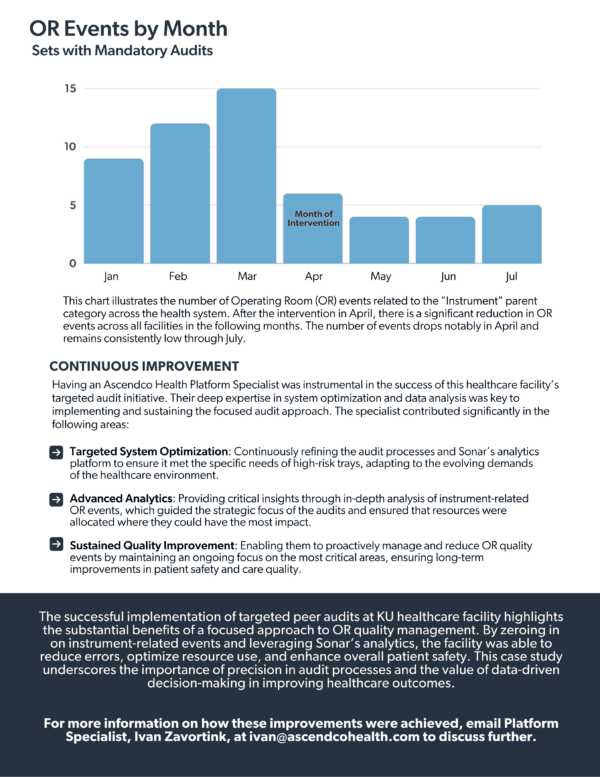 - Advanced Analytics: Leveraging data analytics to gain deep insights into instrument-related OR events, guiding the strategic focus of the audits and ensuring resources were allocated for maximum impact.